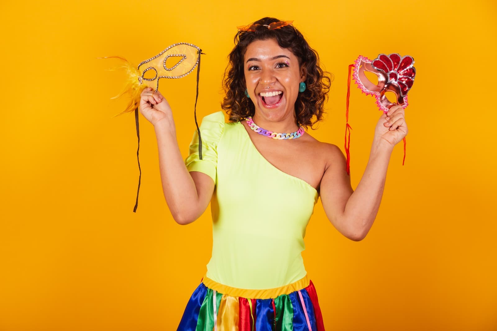 Foto: https://br.freepik.com/fotos-premium/linda-mulher-brasileira-afro-americana-em-roupas-de-carnaval-segurando-duas-mascaras-de-carnaval_38355608.htm