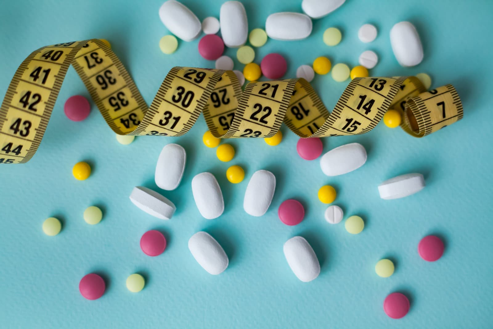 Foto: https://br.freepik.com/fotos-premium/faca-dieta-pilulas-e-fita-metrica-em-um-fundo-azul_7504130.htm